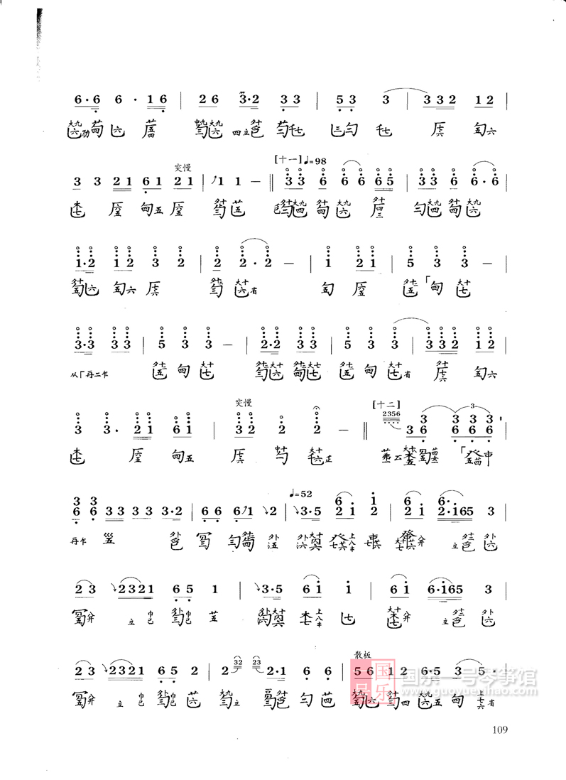 《潇湘水云》:古琴曲,是宋代浙派琴家创始人郭沔(字楚望,约公元1190—1260年)的代表作。当时元兵南侵入浙,郭沔移居湖南衡山附近,常在潇、湘二水合流处游航。每当远望九嶷山为云水所蔽,见到云水奔腾的景象,深感国事飘零,激起他对山河残缺、时势飘零的无限感慨,借水光云影,以寄抑郁、眷念之情。